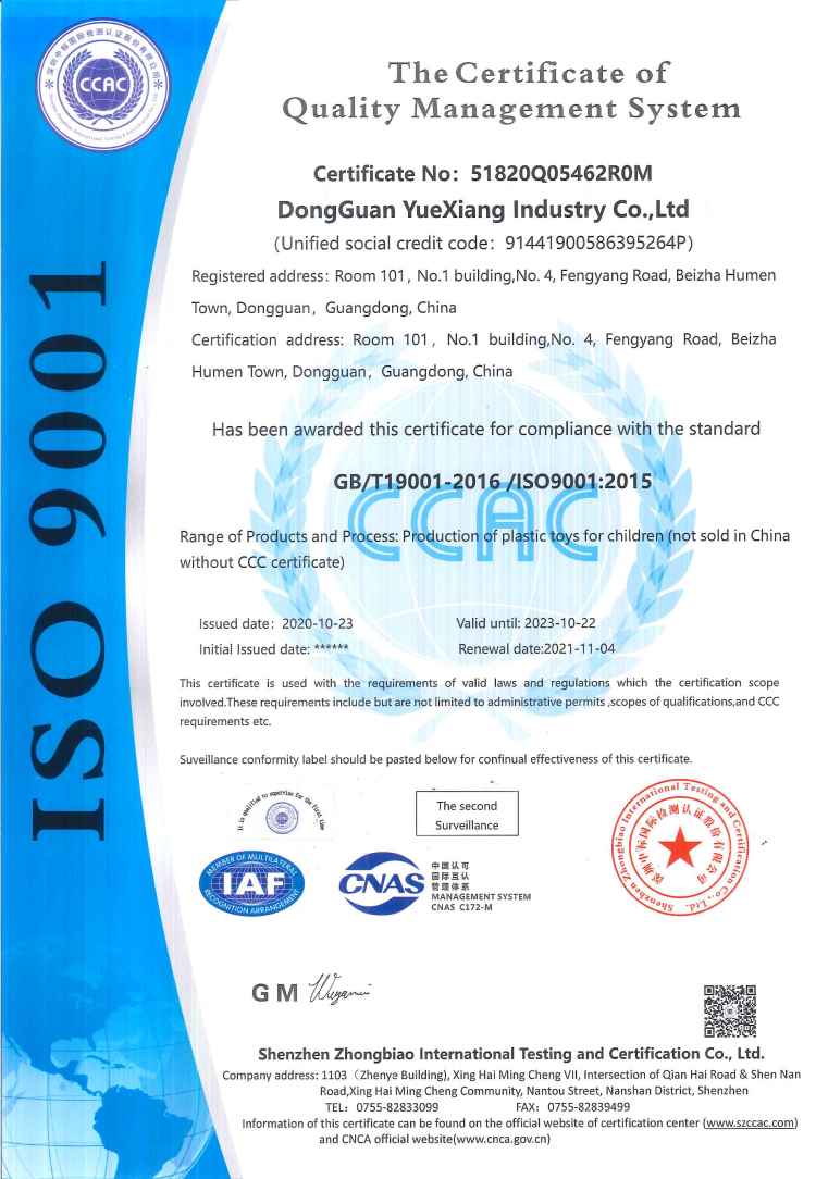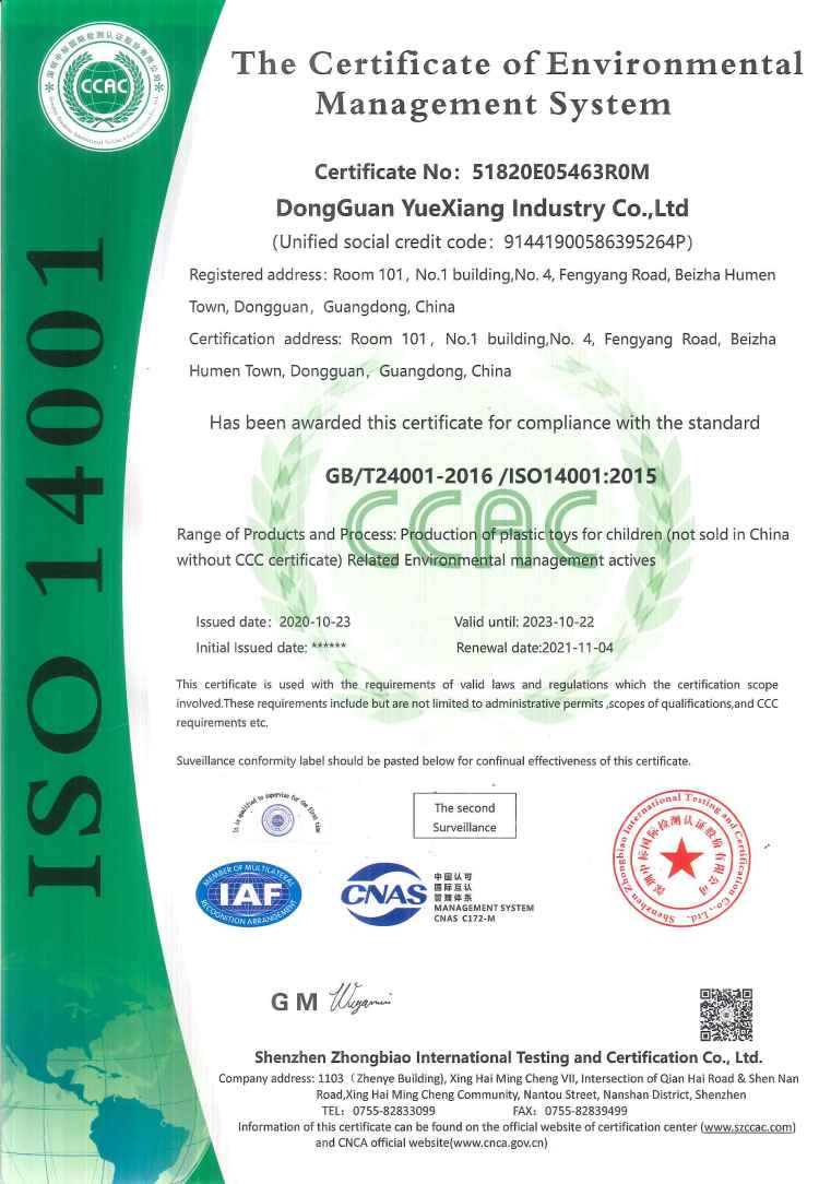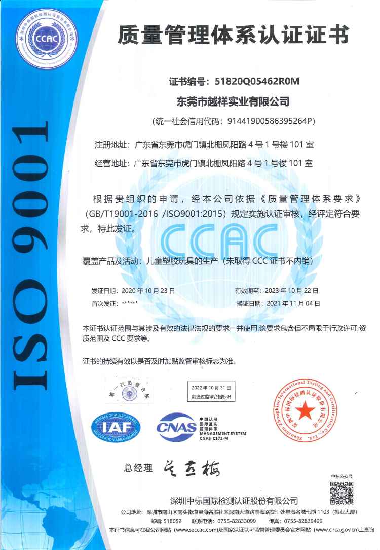祝東莞市越祥實業有限公司通過ISO9001質量認證、ISO14001環境管理體系認證