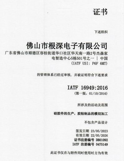 祝賀佛山市根深電子有限公司2023年快速通過IATF16949認證
