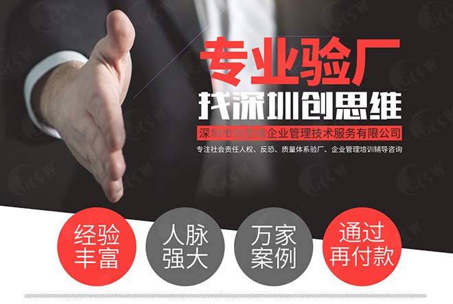 安達屋驗廠通常委托UL派代表到工廠以作實地評估。所有被評估過的供貨商,代理商或其它經營者都認為此次評估非常有教育意義,能更深刻的解讀勞動法,人力資源和環境問題等。通常為2周的不通知審核,社會責任采取的法國比較通用的標準ICS,指定的是UL公司進行審核。